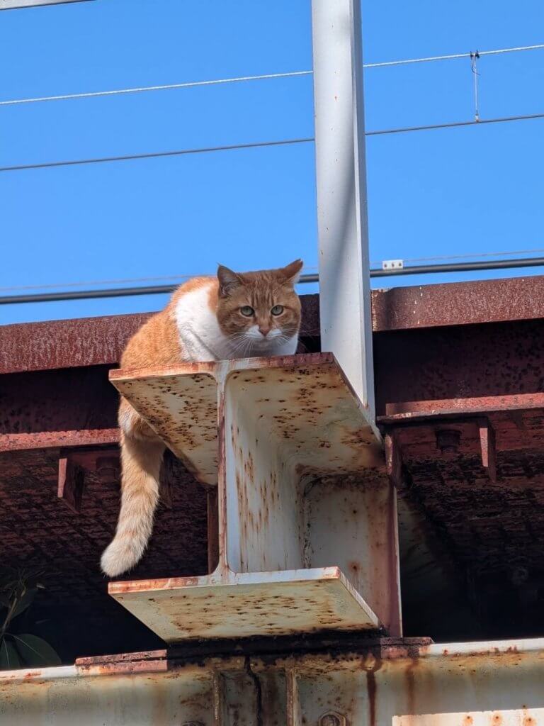 はっと振り返って見ると、上の方からキャッツアイ笑。